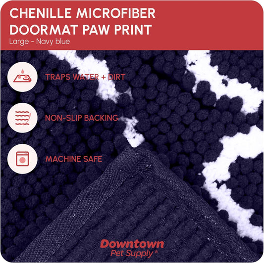 Microfiber Dog Mat for Muddy Paws, 36" X 26" Navy Blue with Paw Print - Absorbent, Quick-Drying, Washer and Dryer Safe - Non-Slip Rubber Backed Pet Cleaning Mat, Large