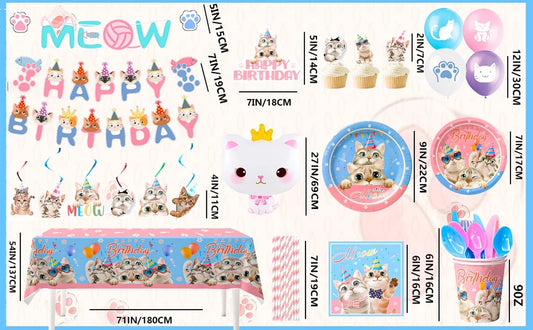 Cat Birthday Party Supplies,178Pcs Cat Party Decorations&Tableware Set-Kitten Birthday Party Decorations Balloons Banner&Cat Party Plates Cups Napkins Tablecloth Etc Cat Themed Birthday Party Supply